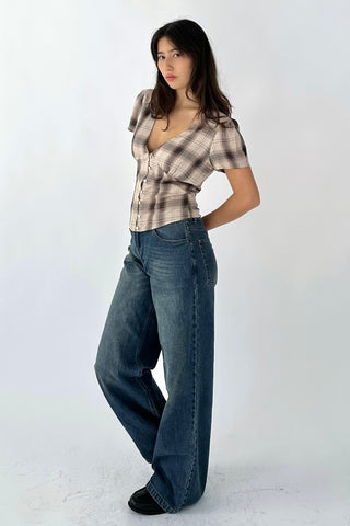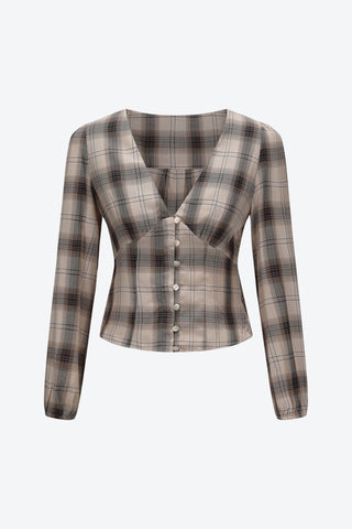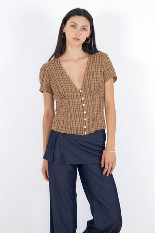 Vivien Button Front Short-sleeves Plaid Blouse