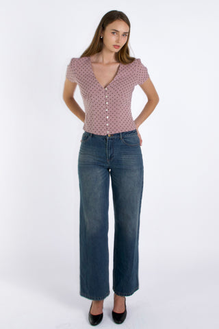 Vivien Button Front Short-sleeves Palka-dot Blouse