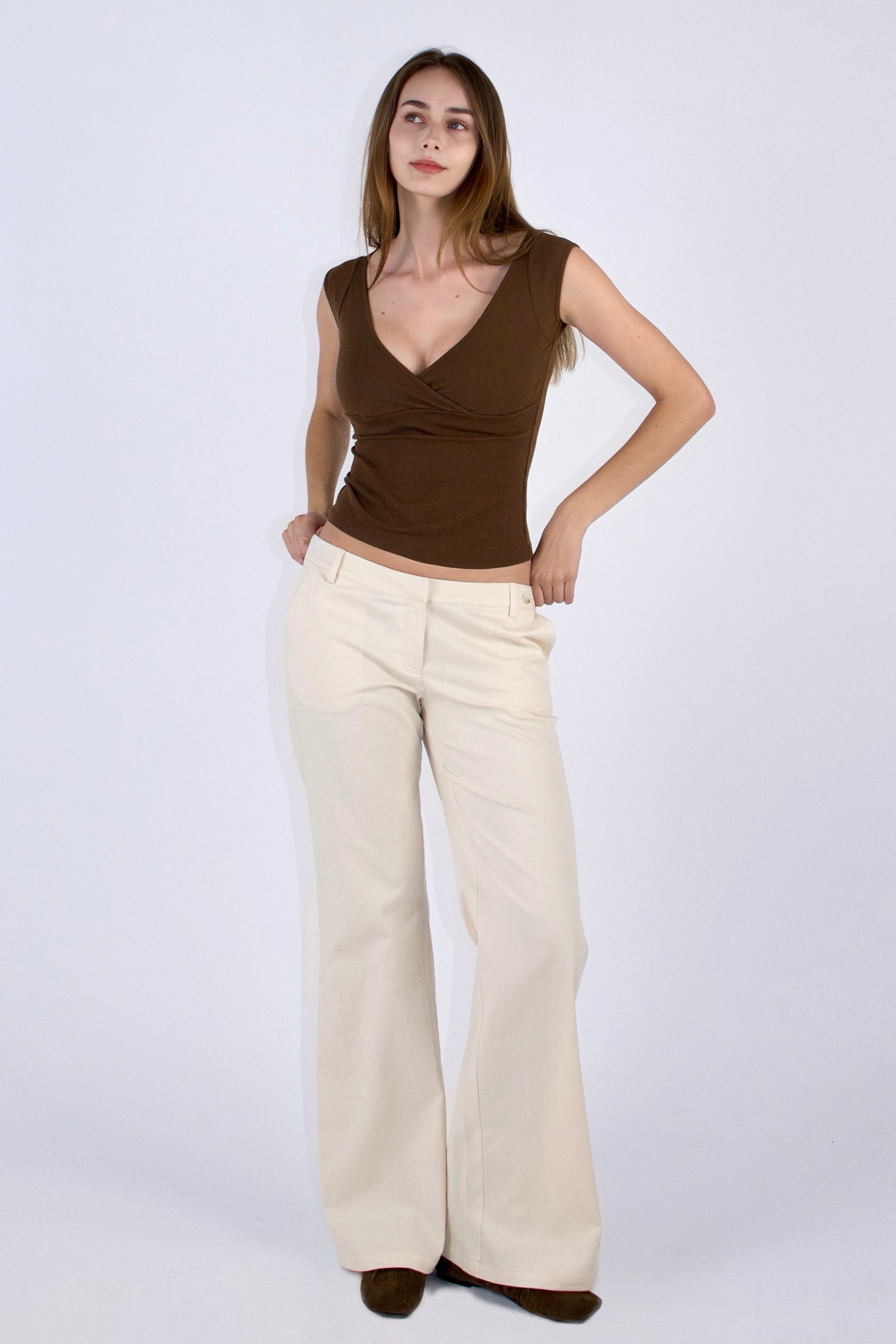 - Design Feature: Showcasing an elegant V-neck design, this piece is enhanced with delicate lettuce hemming that adds a touch of sophistication to the overall look