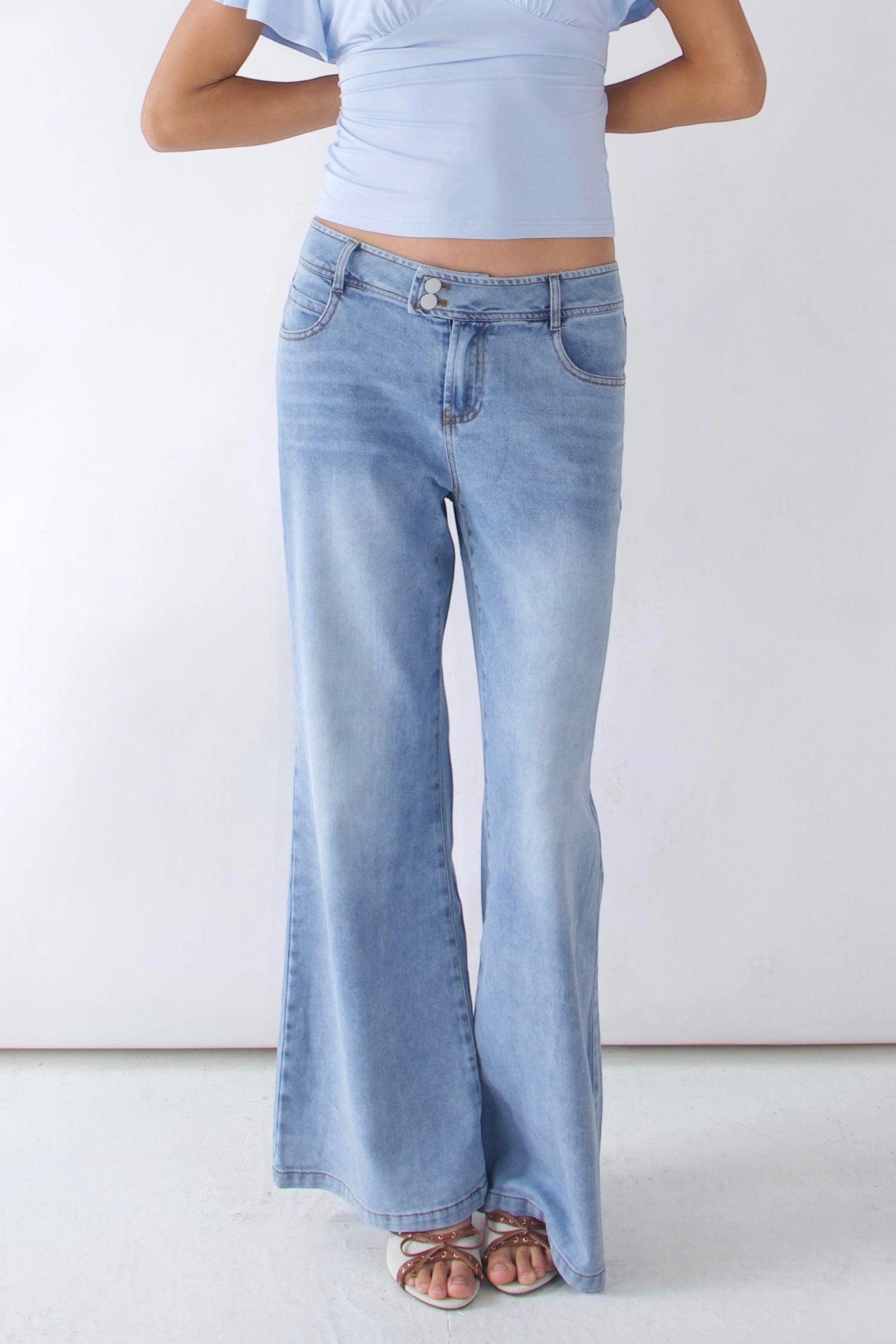 Low-rise, wide-leg stretch denim jeans inspired by early 2000s style.