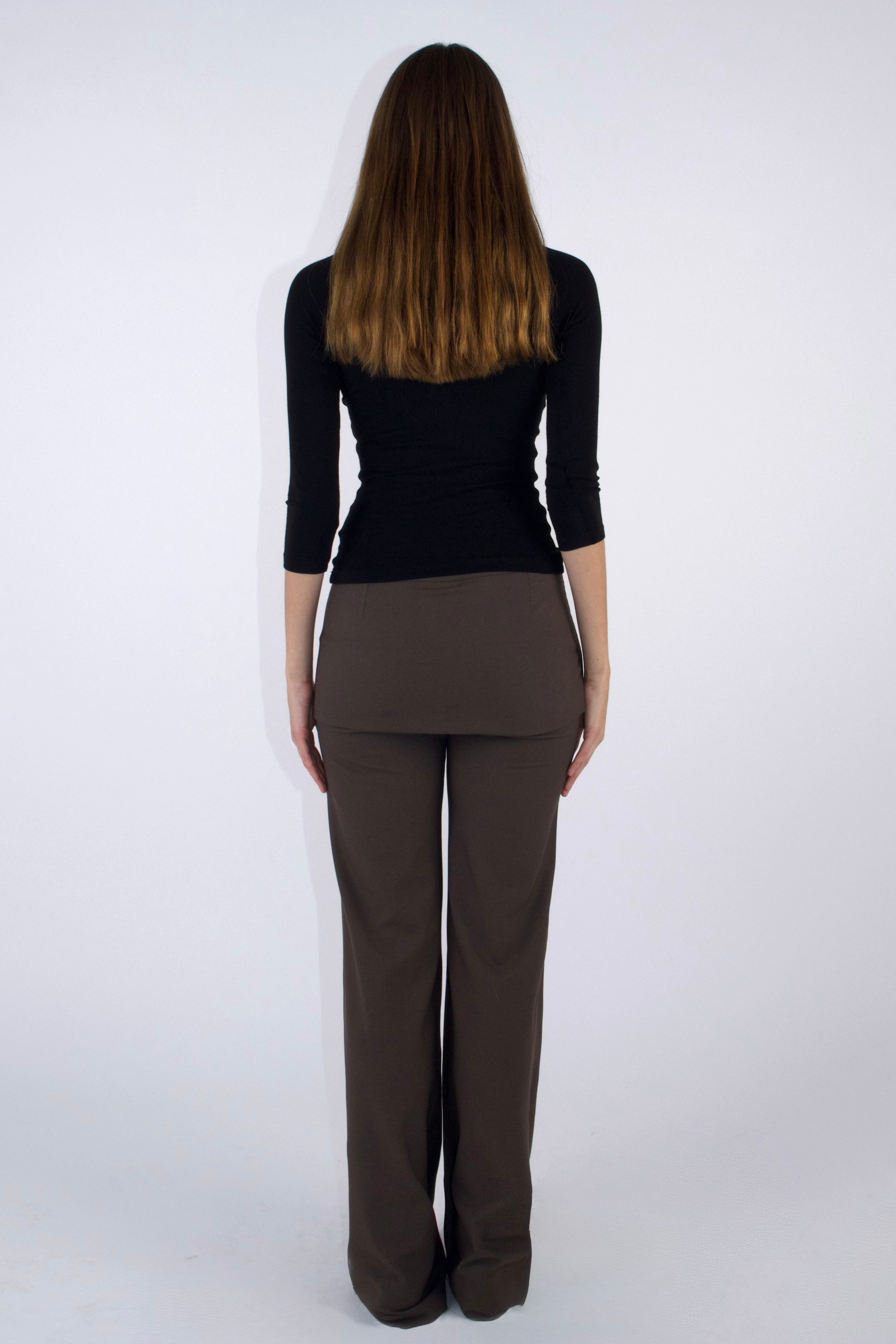 The Tierra Pants reinterpret tailoring through balance and texture. Designed with a low-rise waist and a softly draped skirt overlay, they blur the line between structure and movement. The layered panel folds gently across the body, creating a quiet play of form, architectural yet fluid.