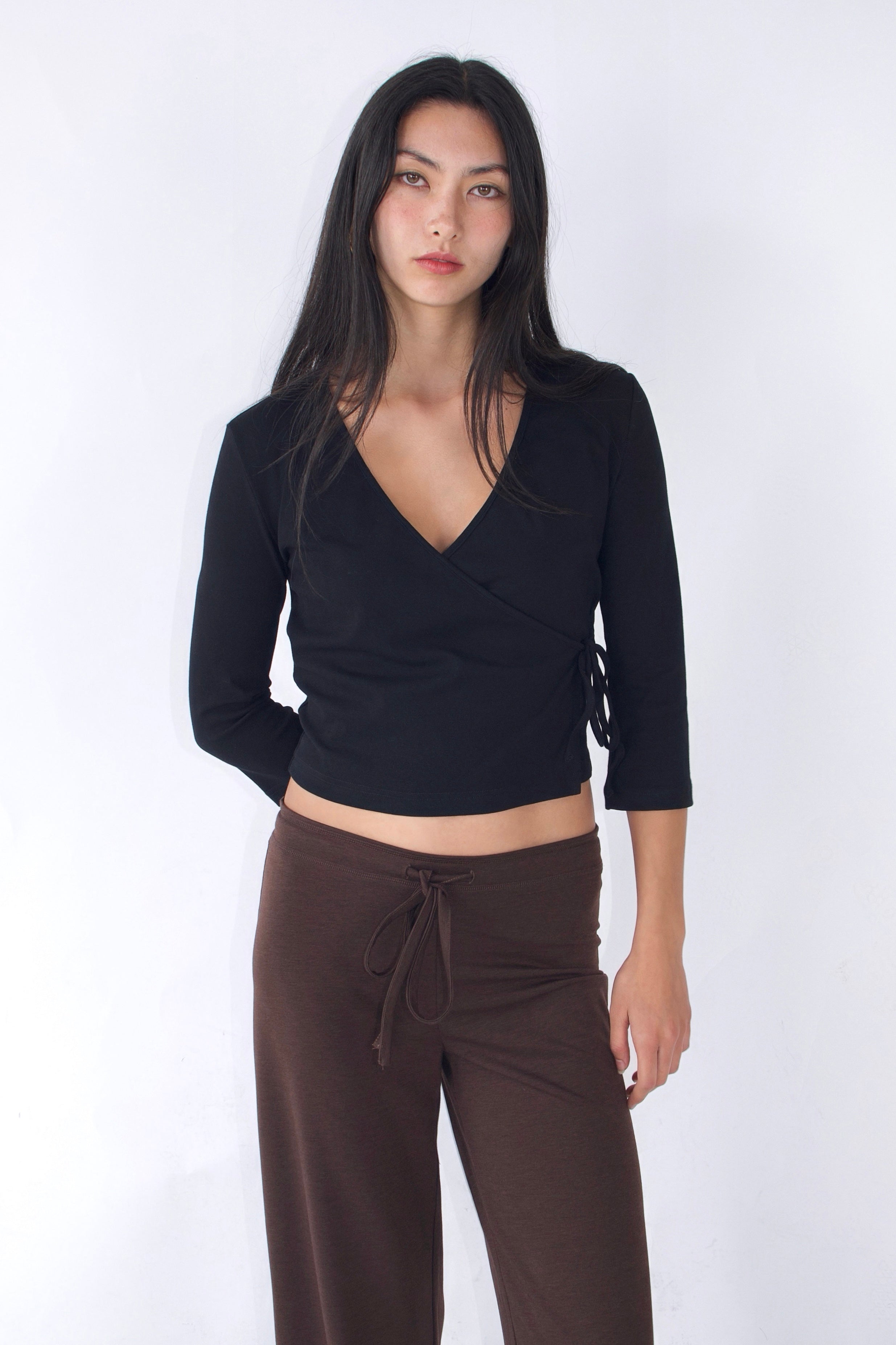 Introducing our 90s French-style long-sleeve wrap top, designed to elevate your everyday elegance