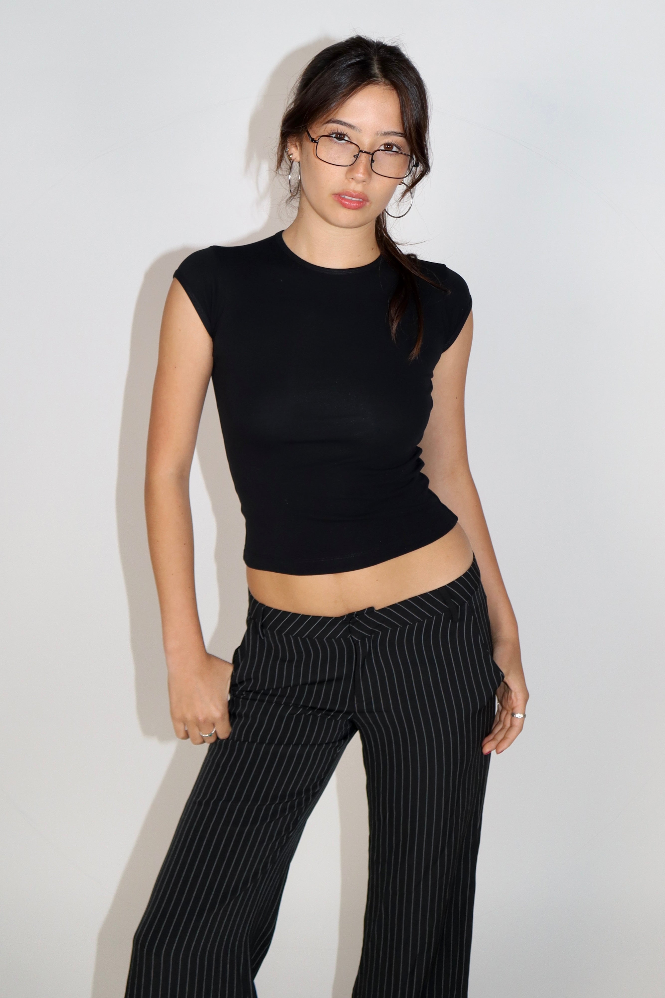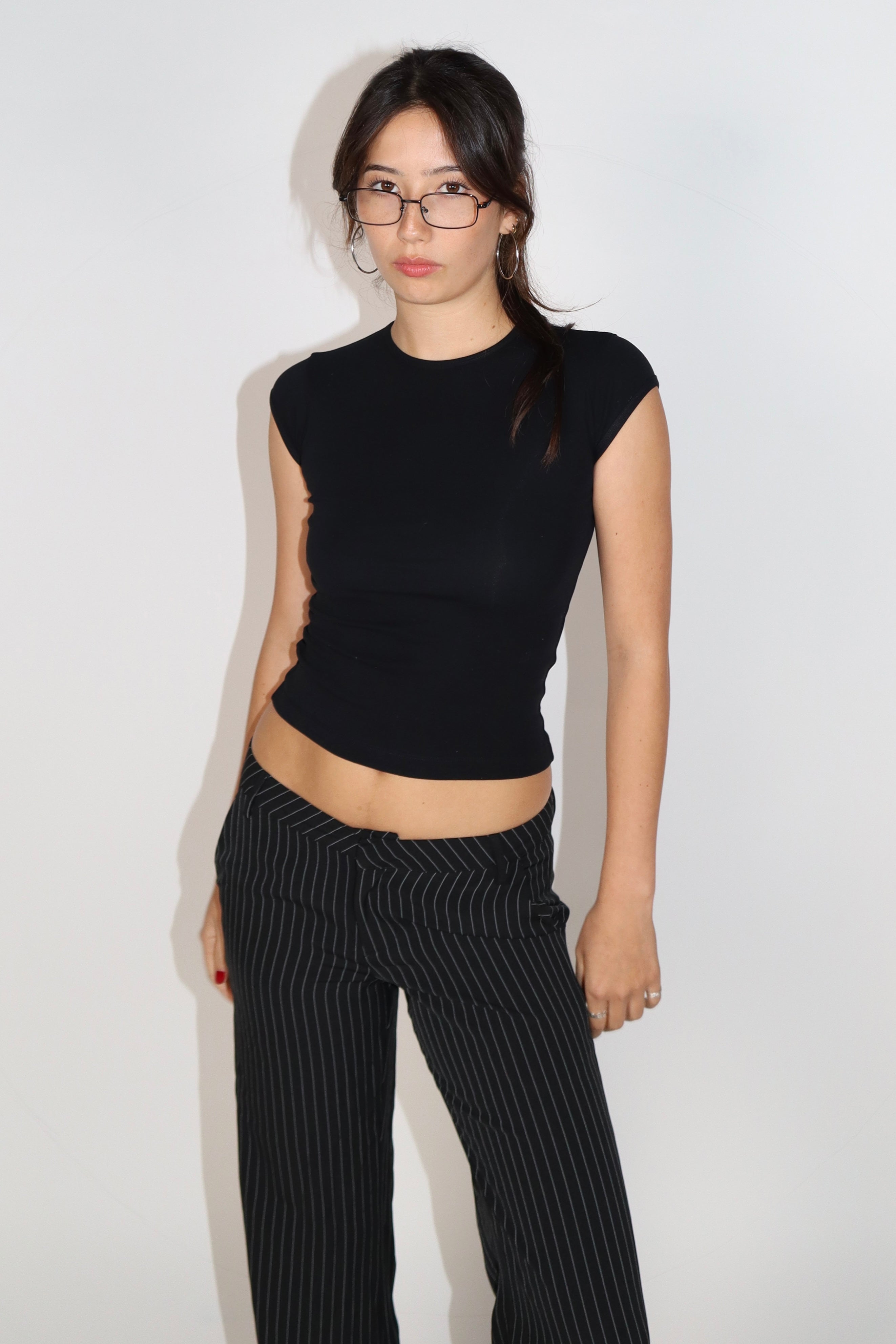 Basic 90s style cap sleeve baby tee that you will need for your everyday wardrobe