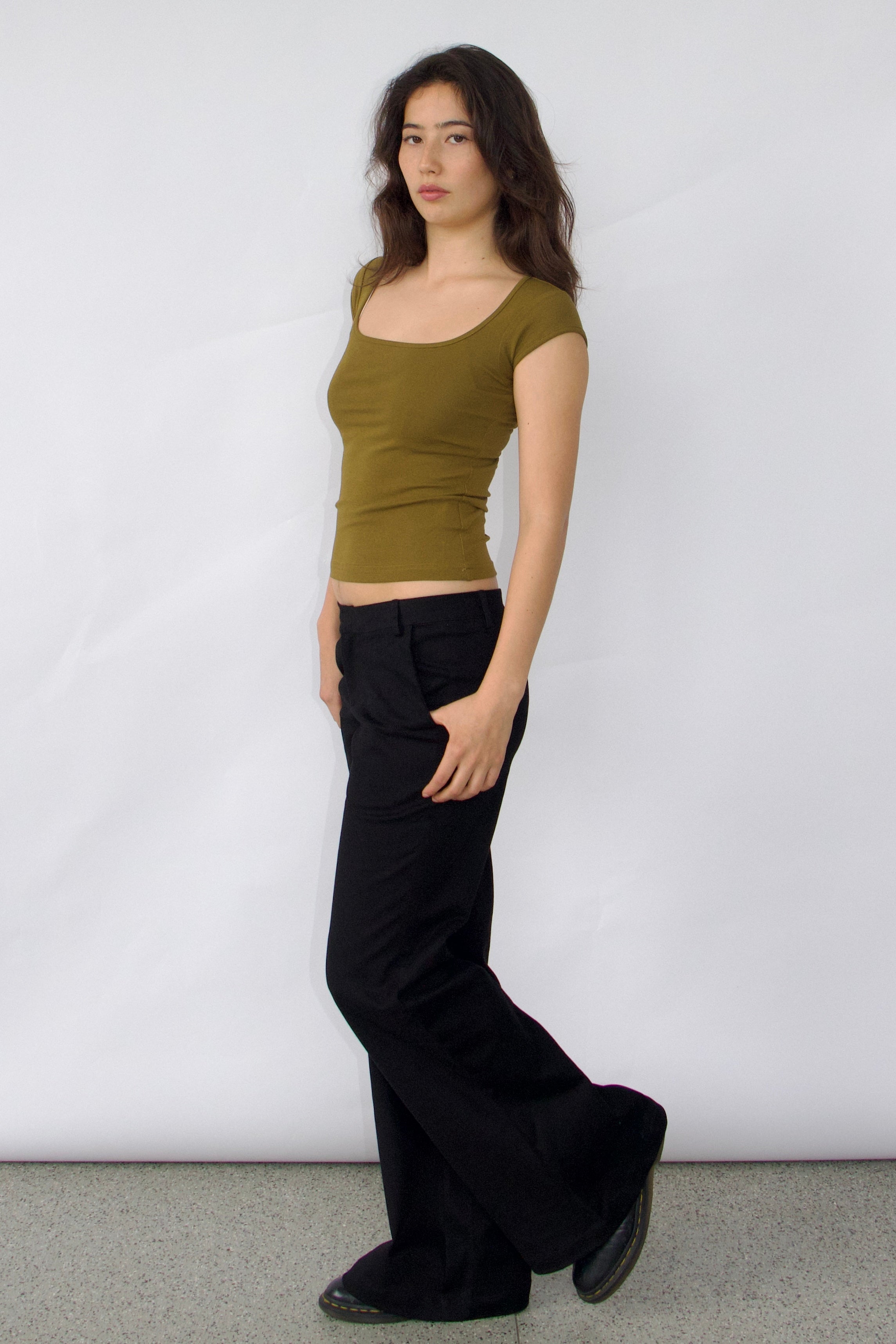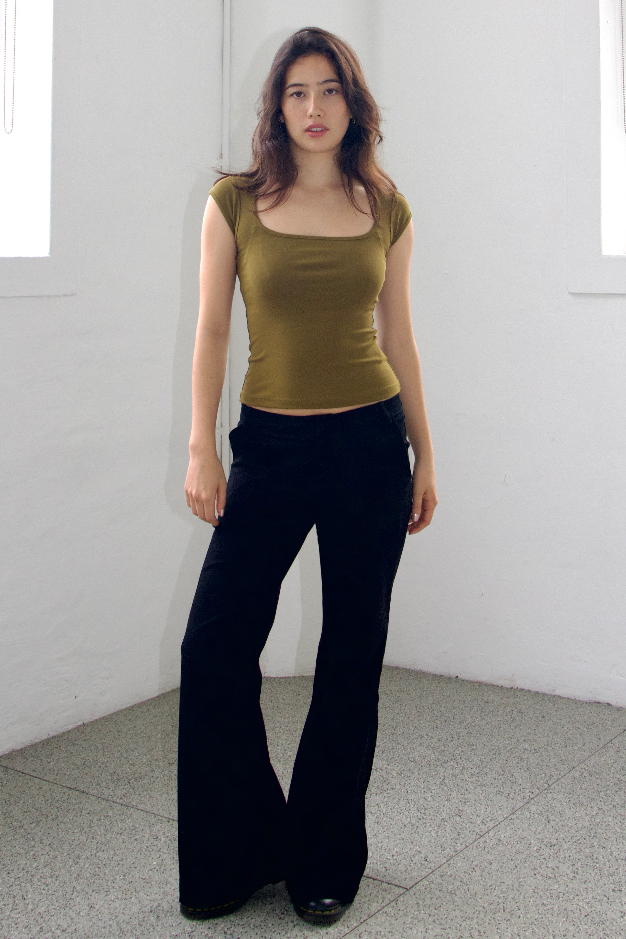 Classic 90s-inspired square neck cap sleeve baby tee designed to accentuate your femininity.