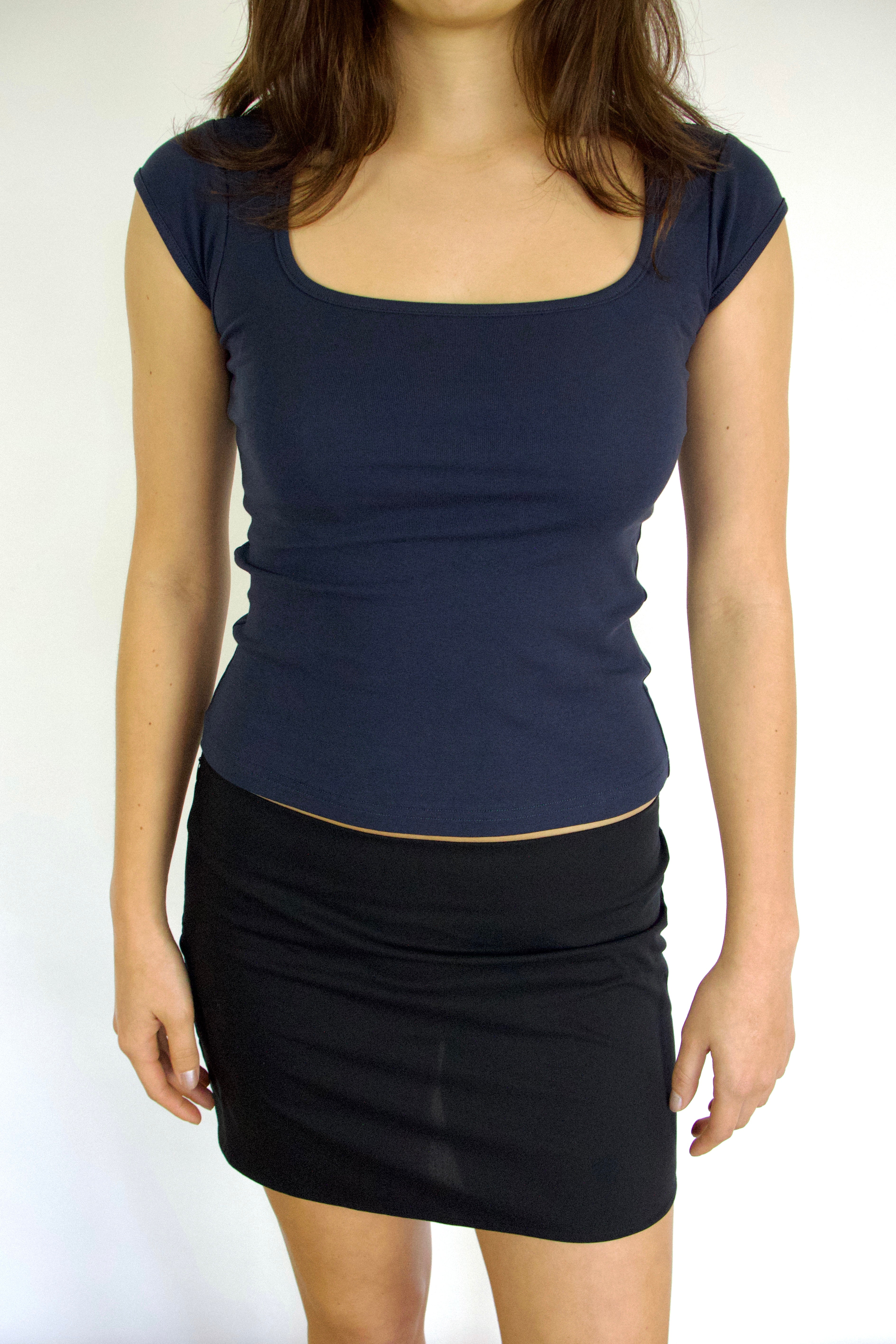 Classic 90s-inspired square neck cap sleeve baby tee designed to accentuate your femininity.