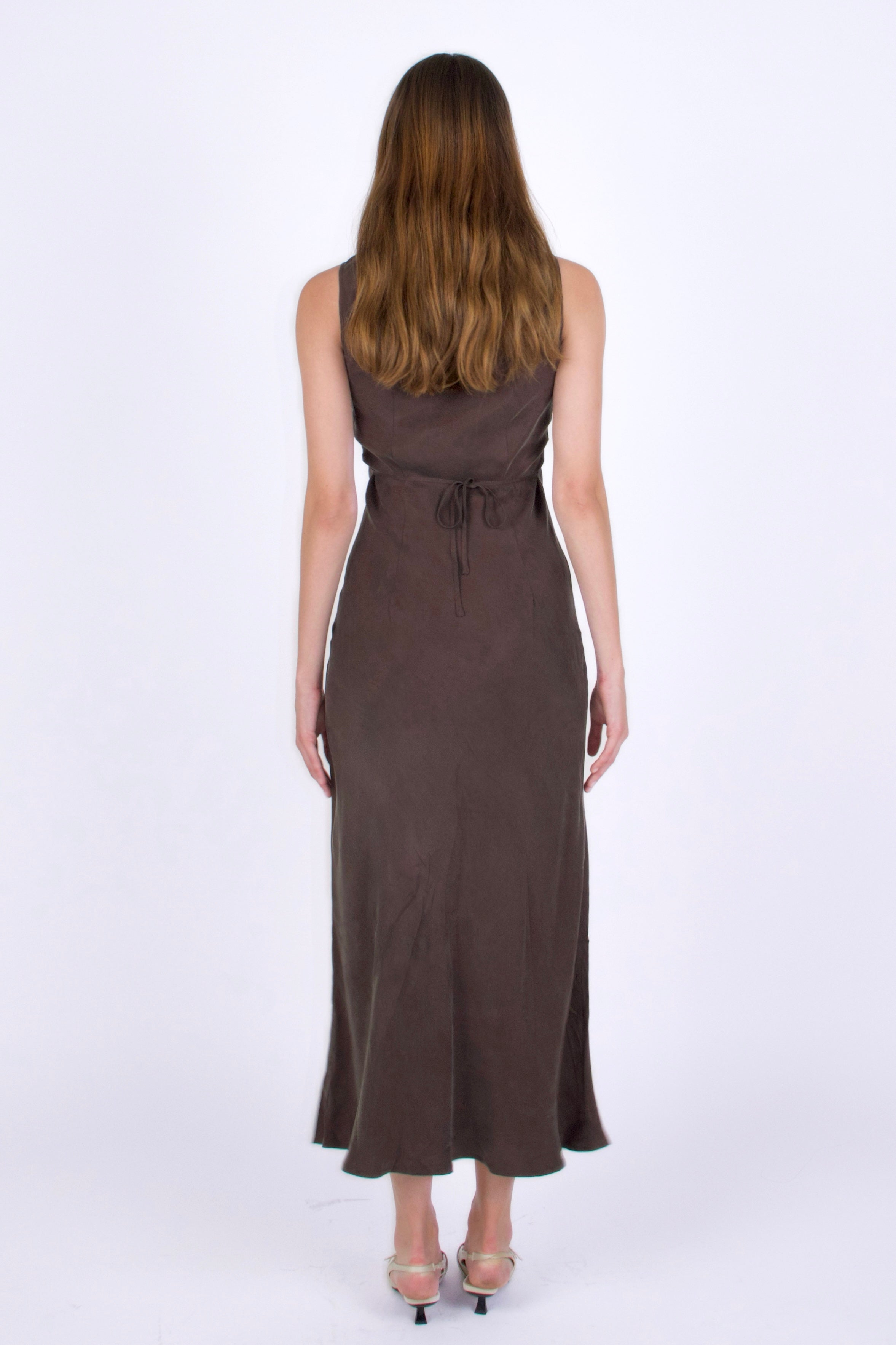 A quiet kind of beauty, the kind that lingers. The Caroline Dress is crafted for women who move with grace and live with intention. The soft silky material drapes gently over your frame, cinched at the waist to follow your shape—not define it.