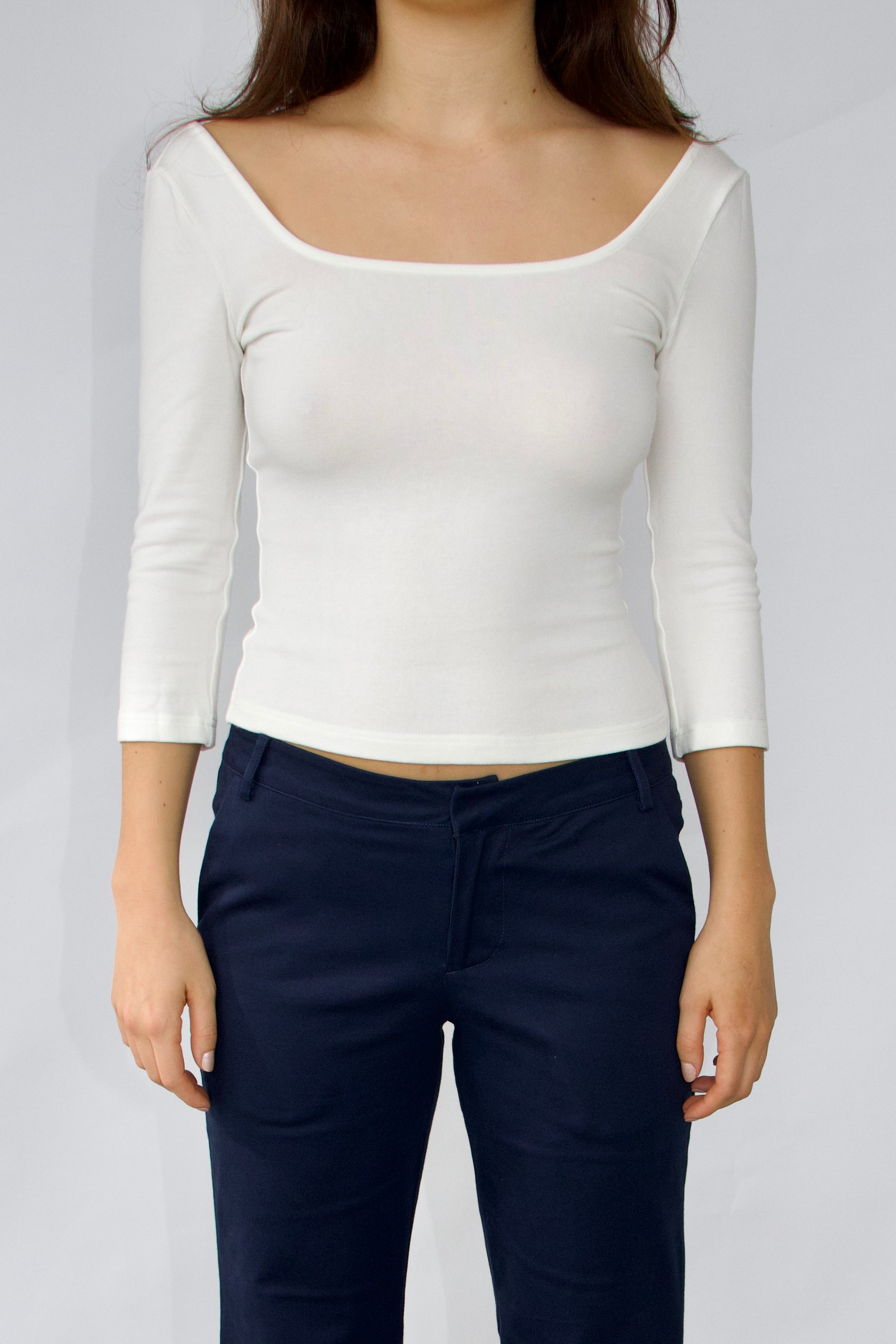 Design Feature: This timeless 90s-inspired top is designed to enhance your silhouette with a waist-defining fit and a wide neckline.