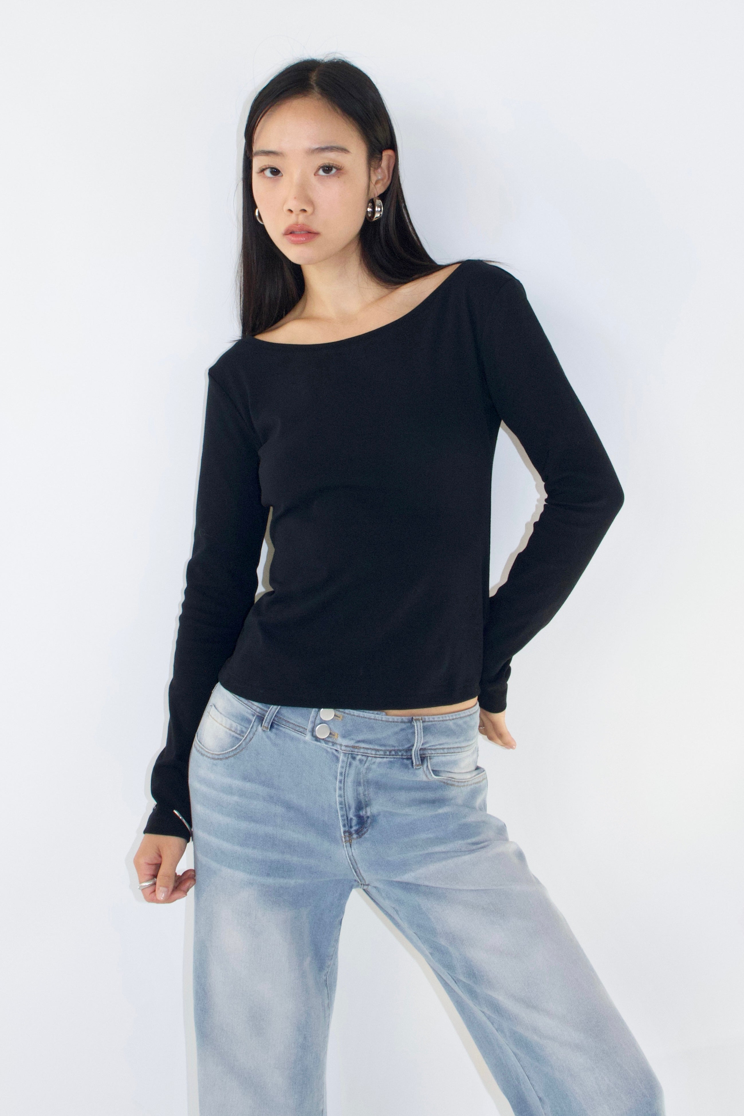 Elevate your everyday uniform with a clean, structured silhouette. This long-sleeve top balances softness and edge—crafted to move with you through the season.