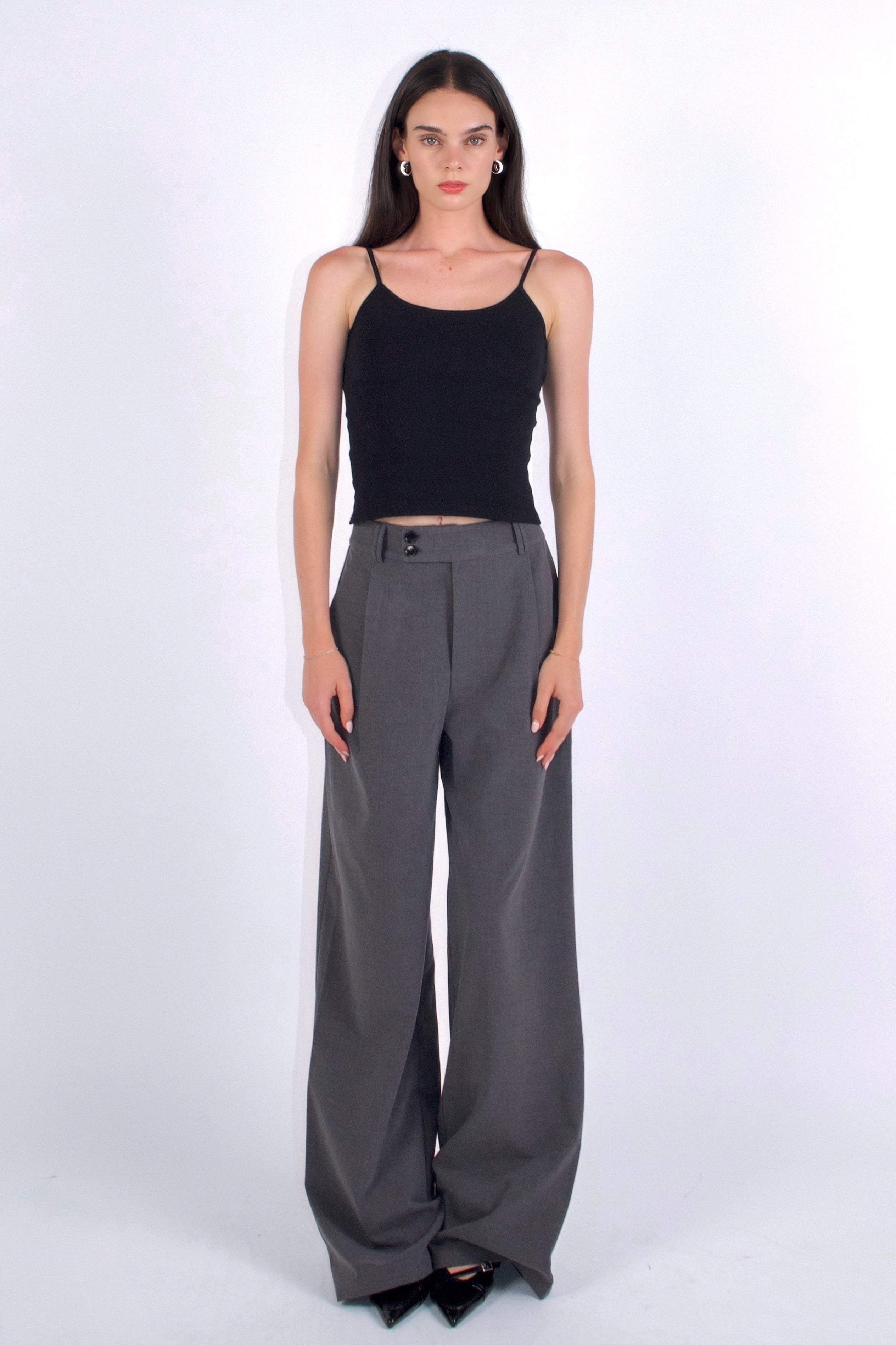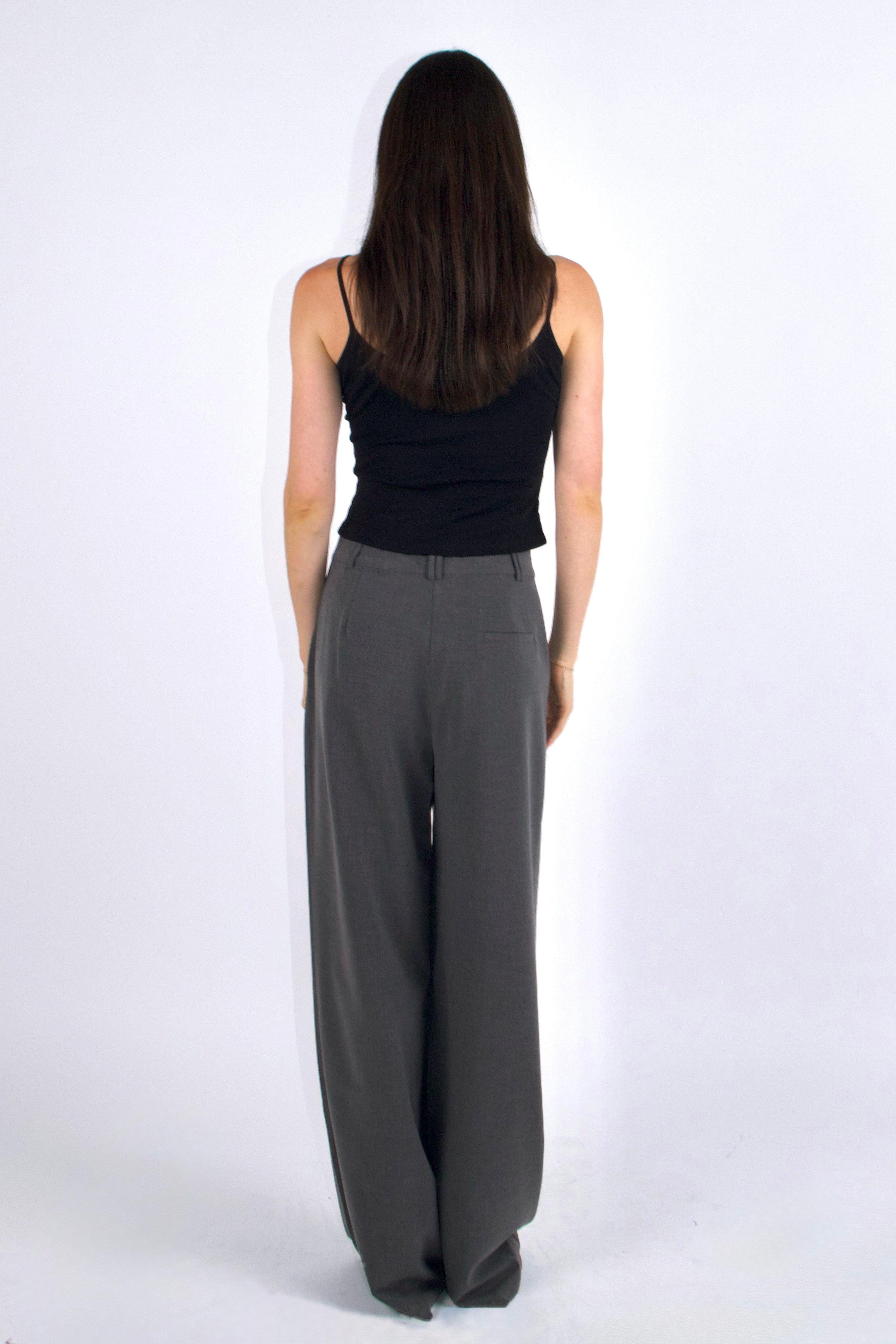 Designed to be your everyday favourite trousers! Handmade with care, these high-waisted, wide-leg trousers in timeless charcoal gray are a wardrobe essential that seamlessly blends elegance with comfort. Perfect for those who want to make a statement, they offer a classic look with a contemporary twist.