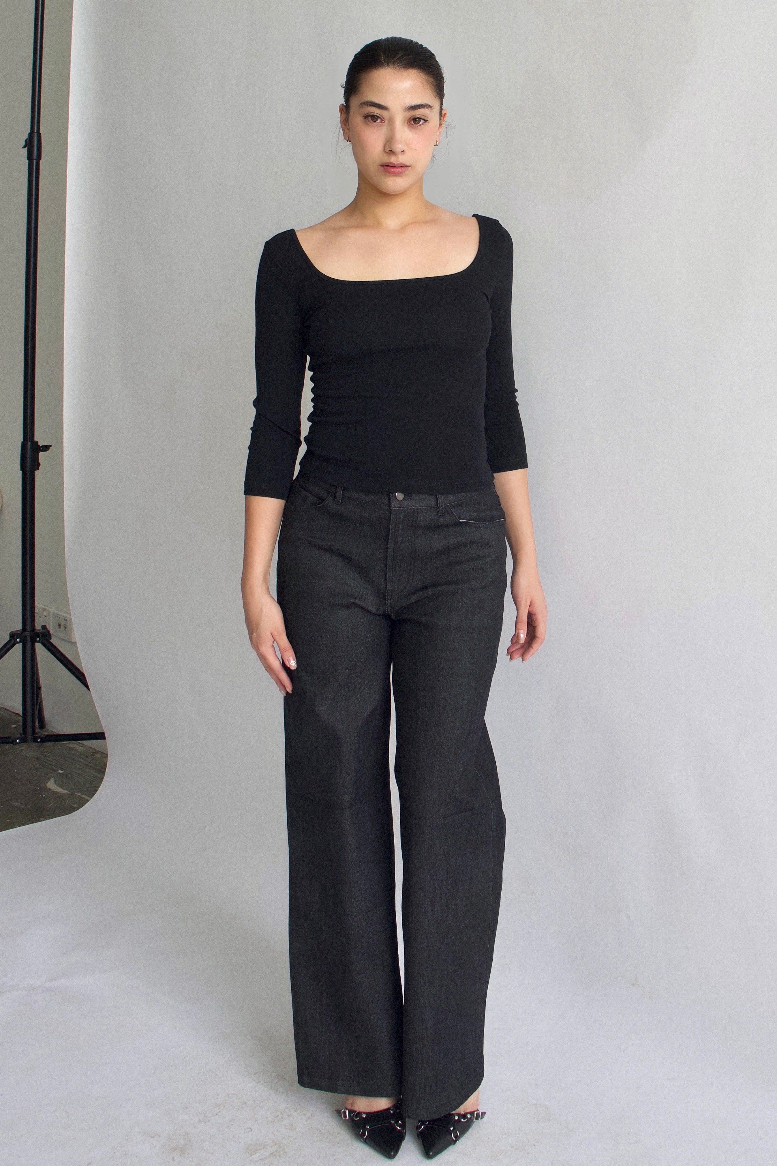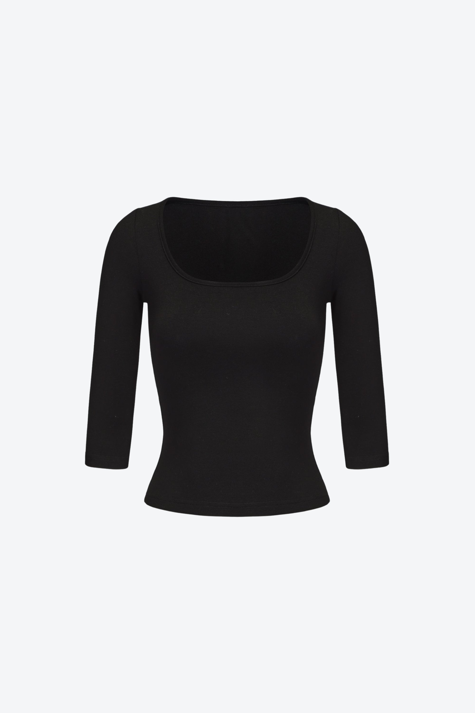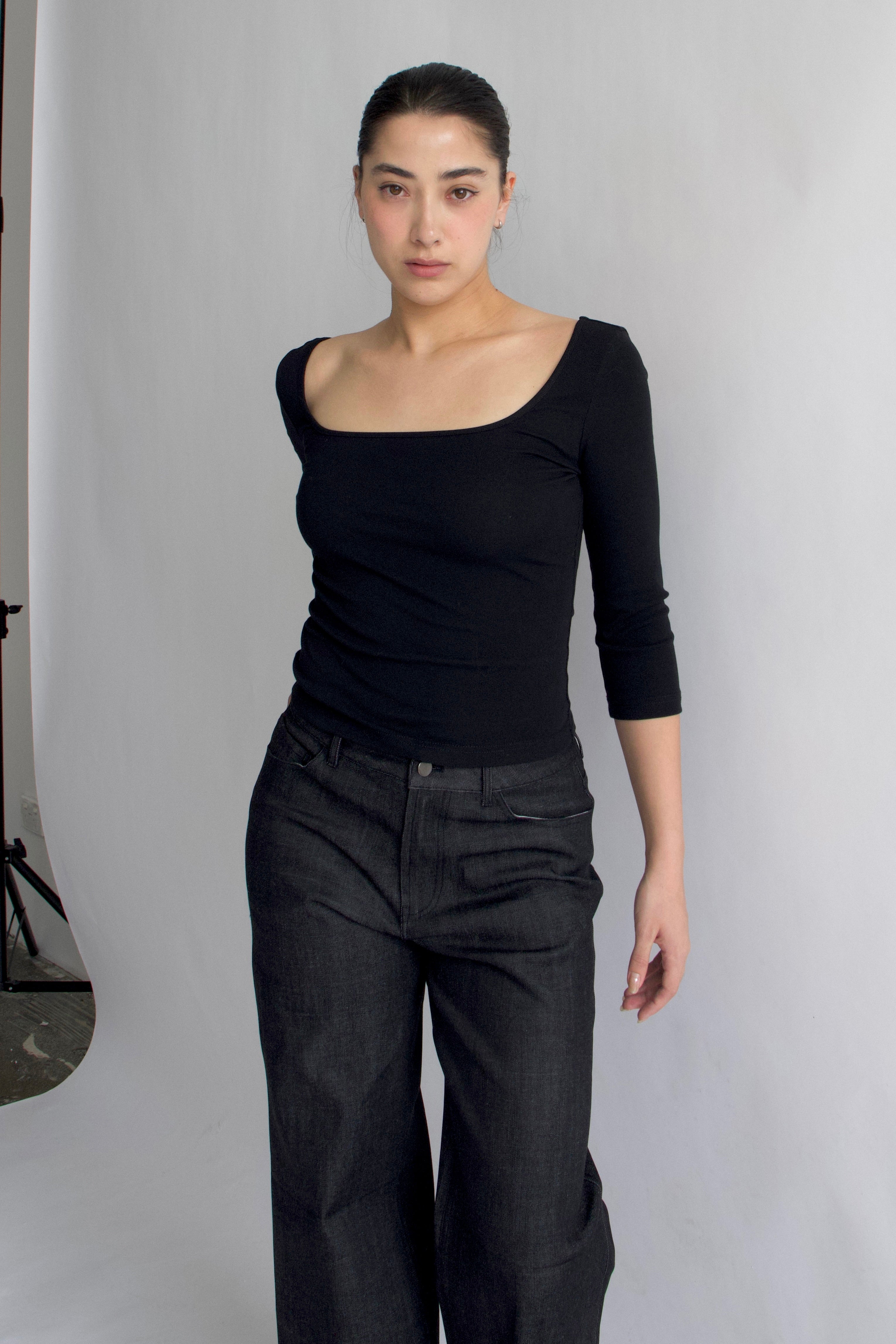 This basic square neck 3/4 sleeve top will become your next timeless wardrobe essential, effortlessly versatile for dressing up or down with any bottoms.