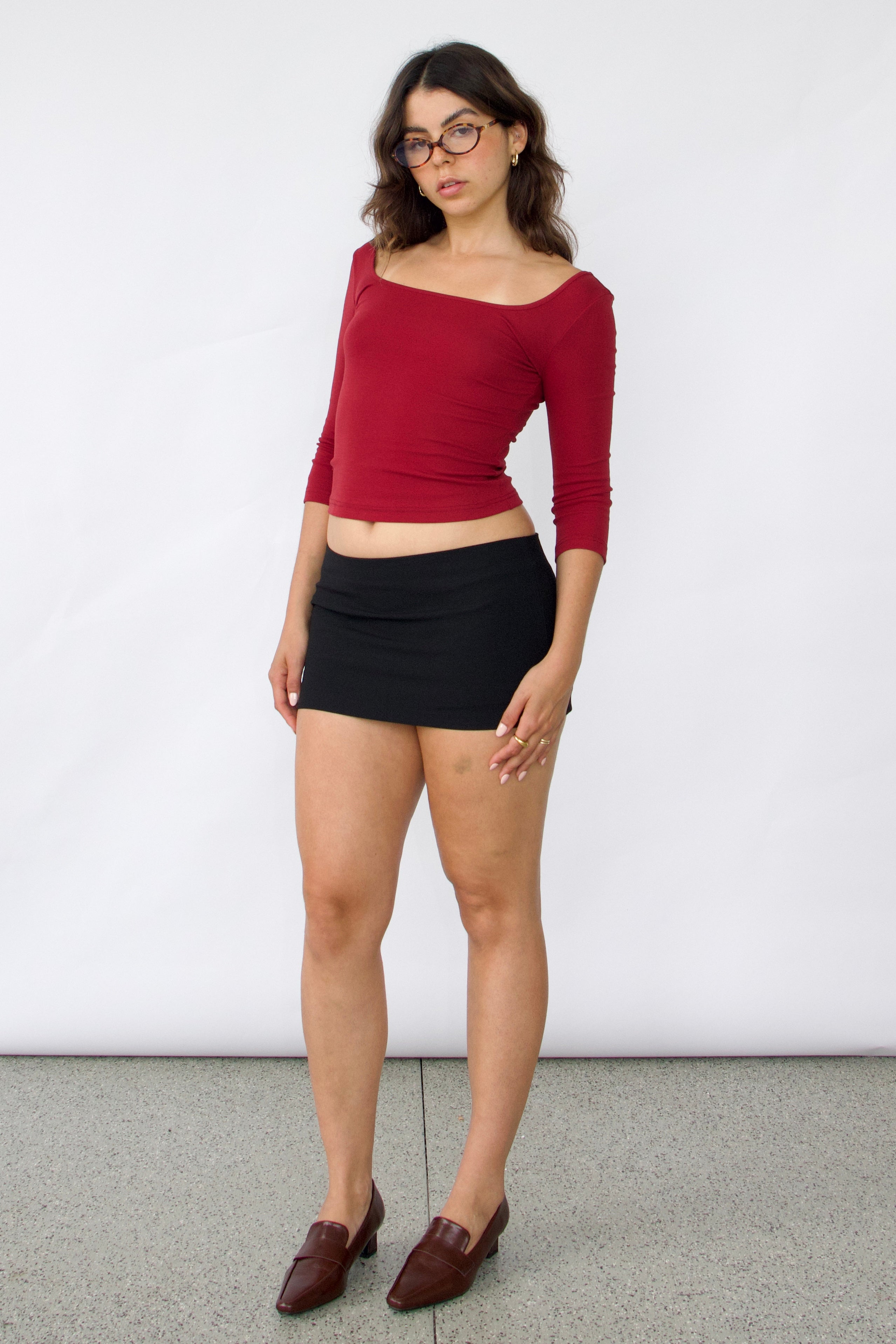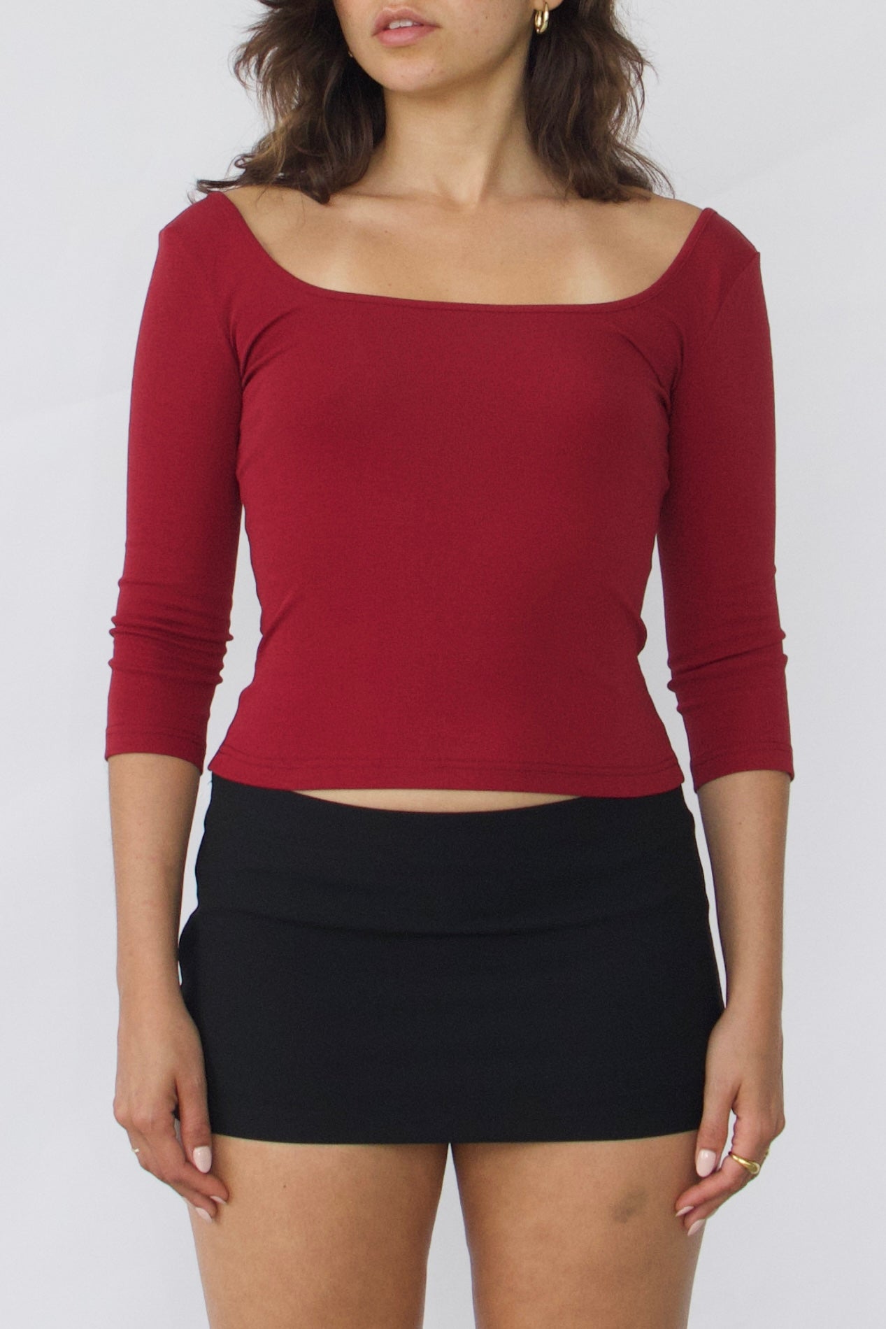 This basic square neck 3/4 sleeve top will become your next timeless wardrobe essential, effortlessly versatile for dressing up or down with any bottoms.