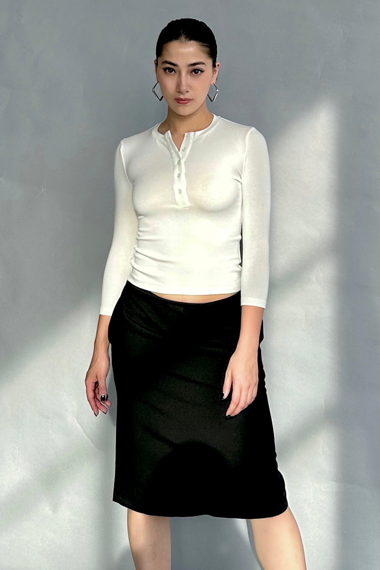 - Design Feature: This timeless 90s-inspired top is designed to enhance your silhouette with a waist-defining fit and henley top shape