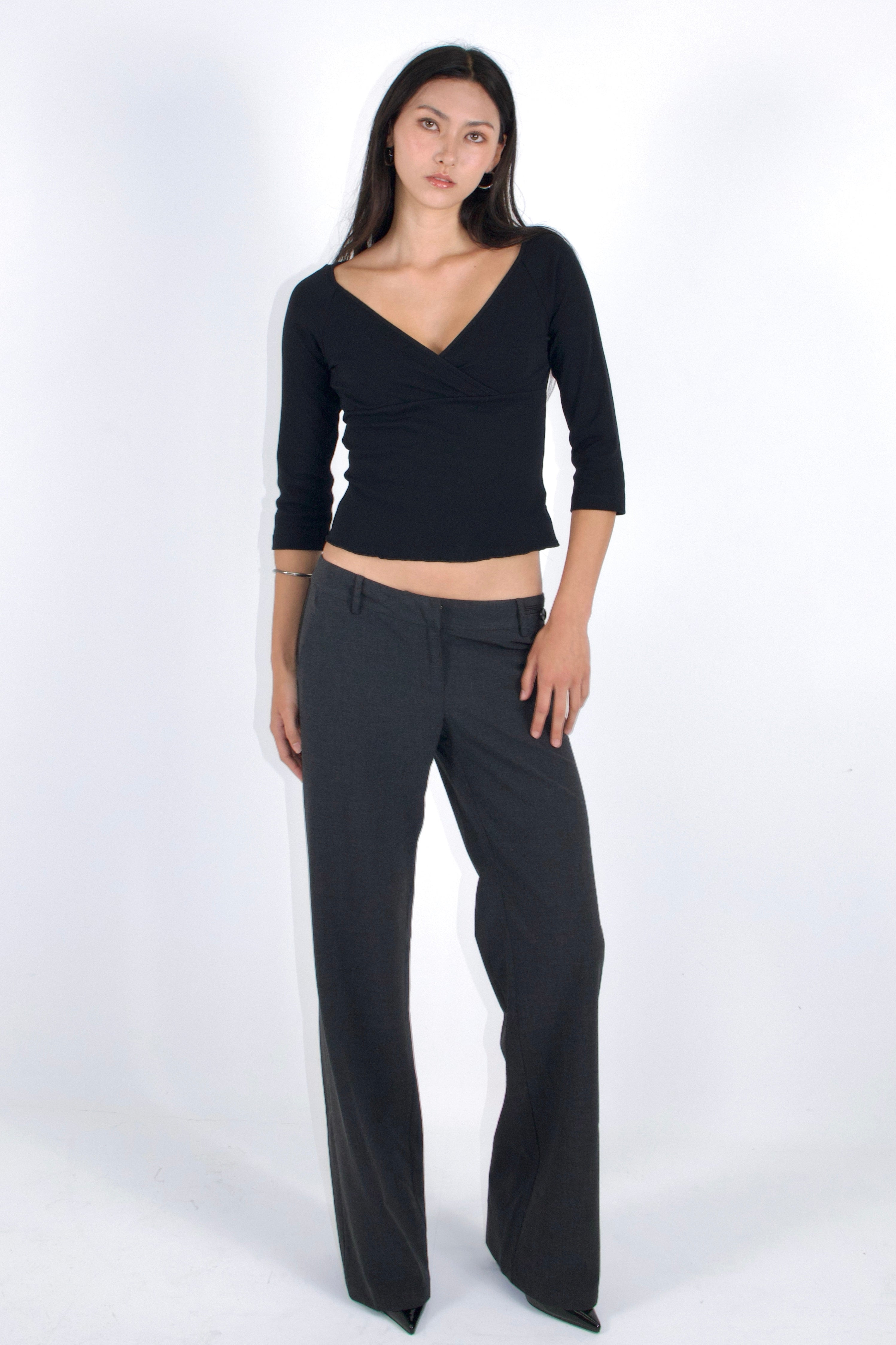 This basic v-neck 3/4 long-sleeve top will be your next classic timeless wardrobe staple, easy to style up and down with any bottoms.