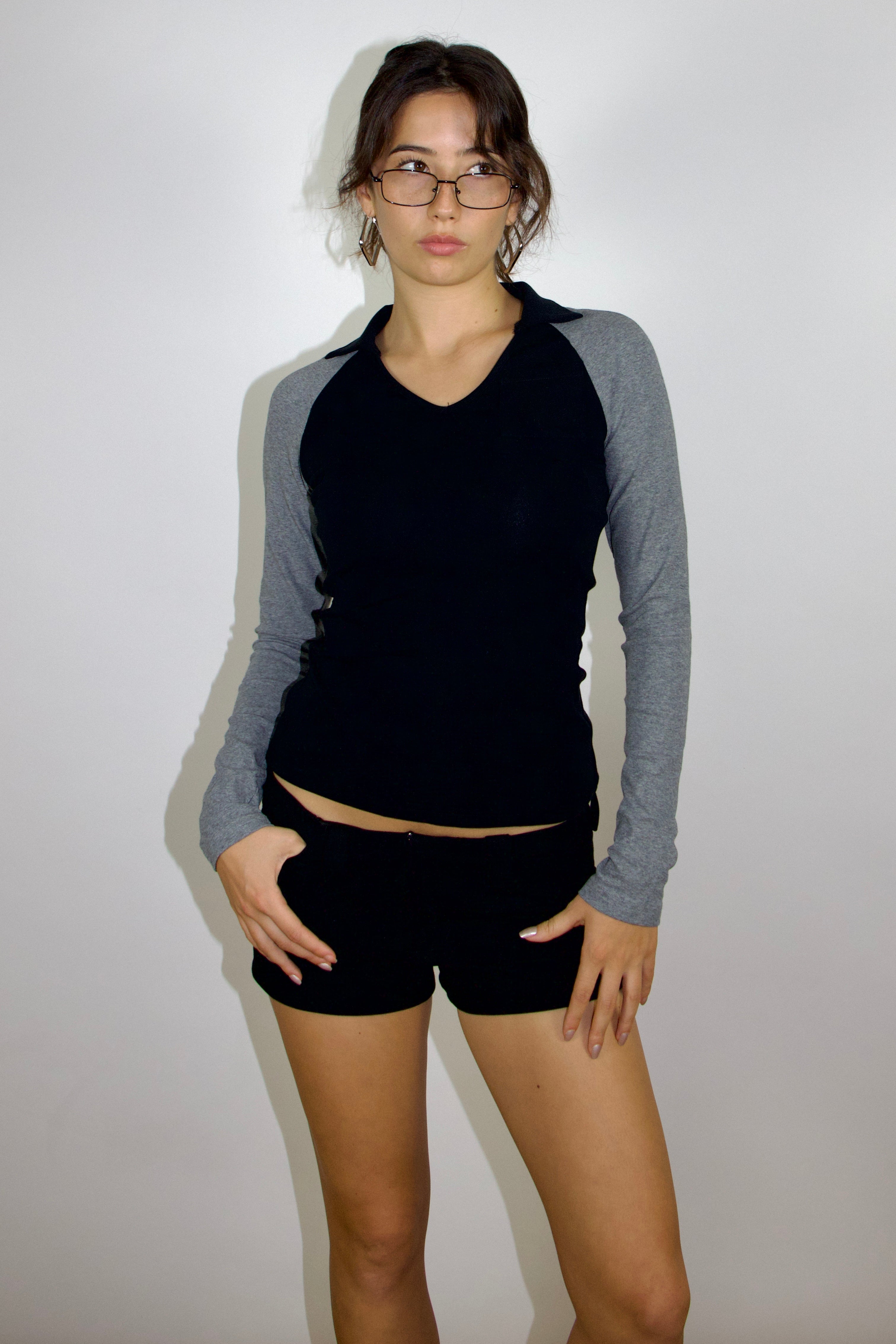 Introduceour 90s-inspired polo featuring a classic two-tone design and long sleeves, crafted for your everyday style.