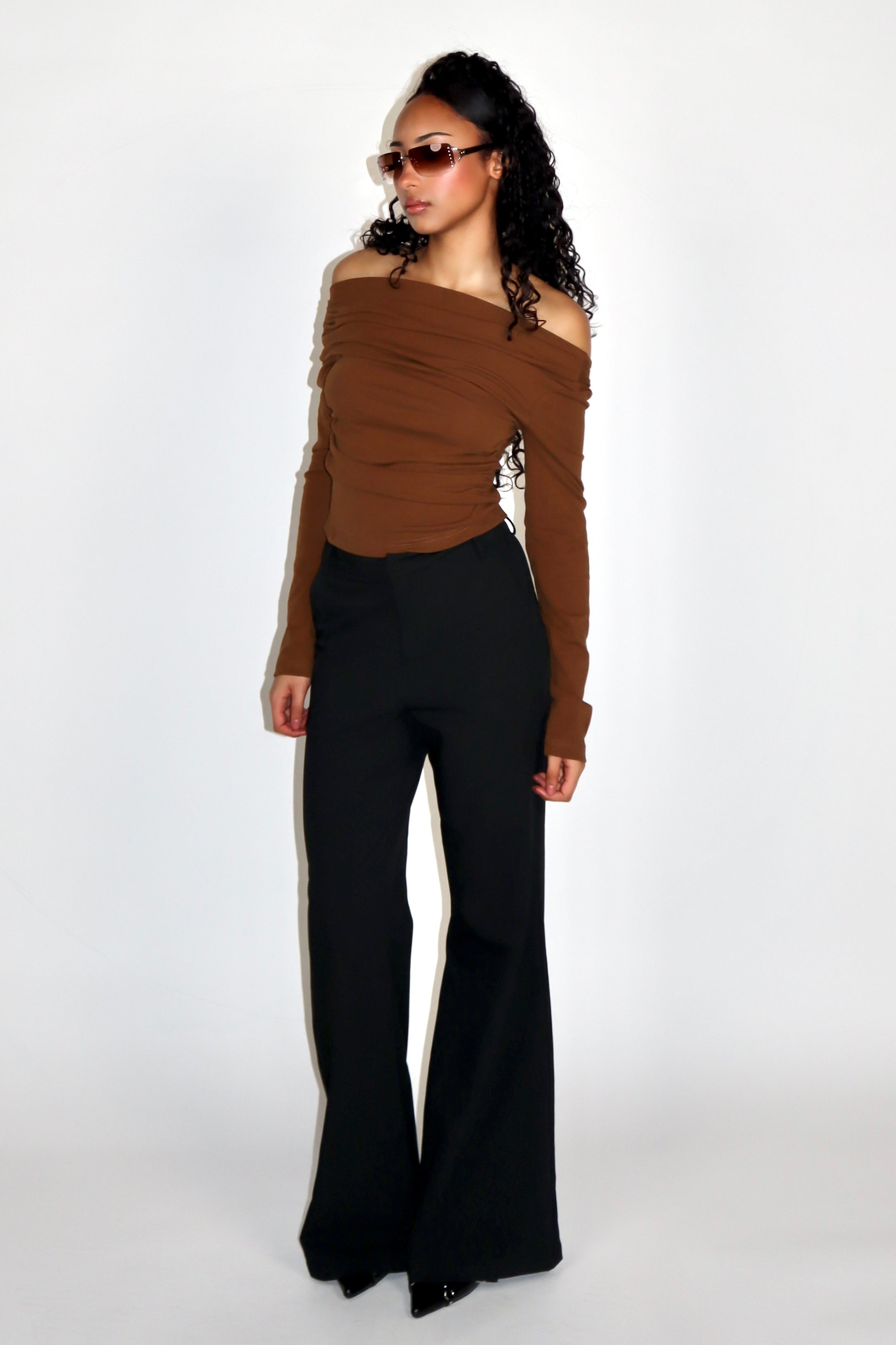 Introducing our timeless off-shoulder backless long sleeves top, designed for your everyday wear.
