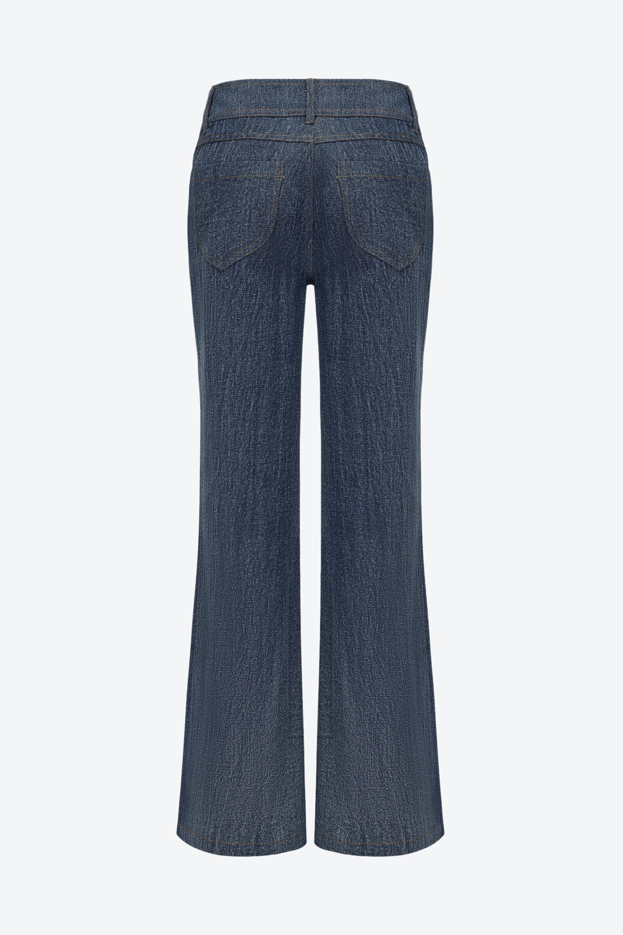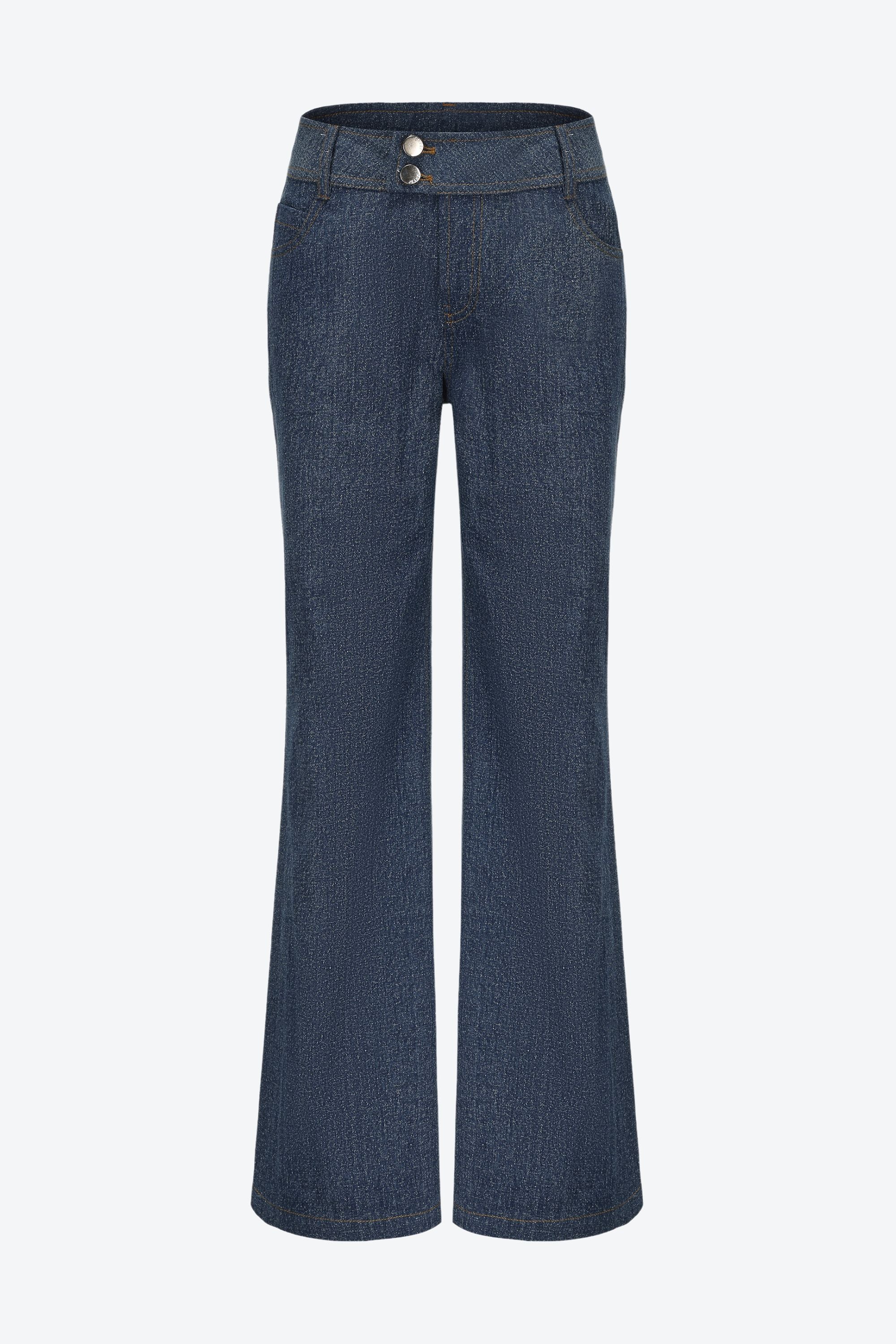 Crafted from stretch denim for all-day comfort, these jeans channel early 2000s minimalism with a double-button waistband and clean lines.