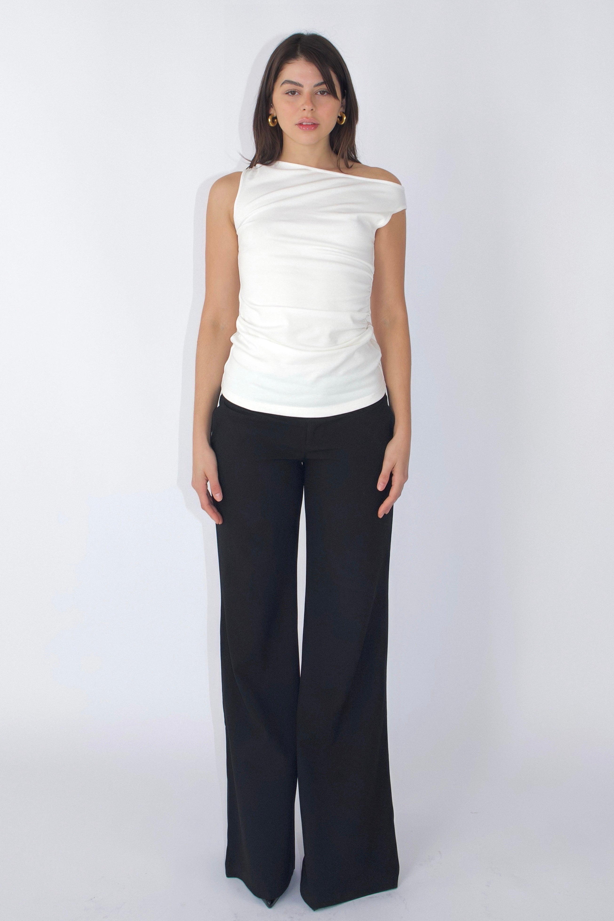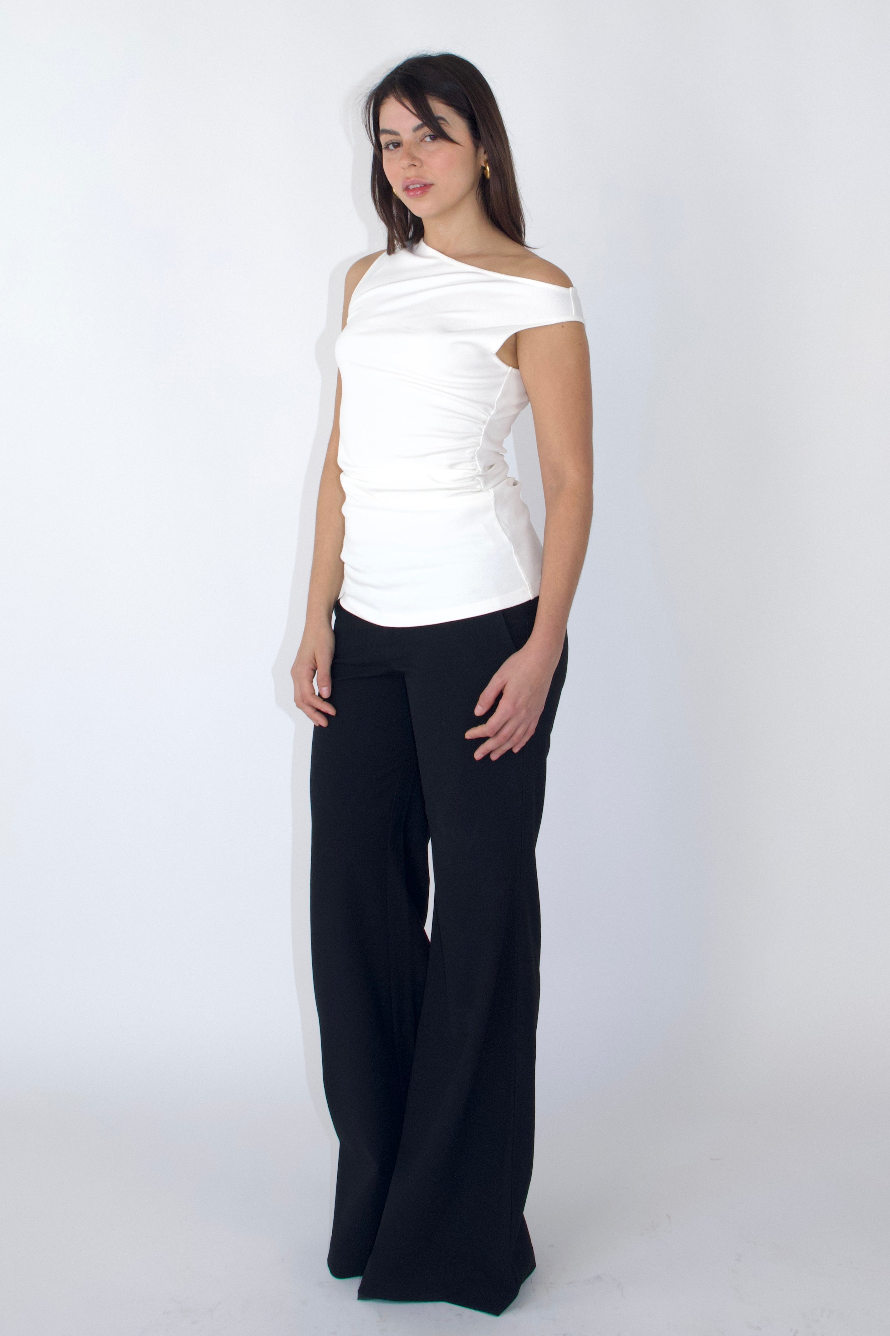 Sable asymmetric top is an expression of quiet confidence and fluid individuality. Designed with an asymmetric neckline and sculptural drape, it offers multiple ways to wear — off one shoulder, twisted, or softly ruched — adapting to your mood and moment.