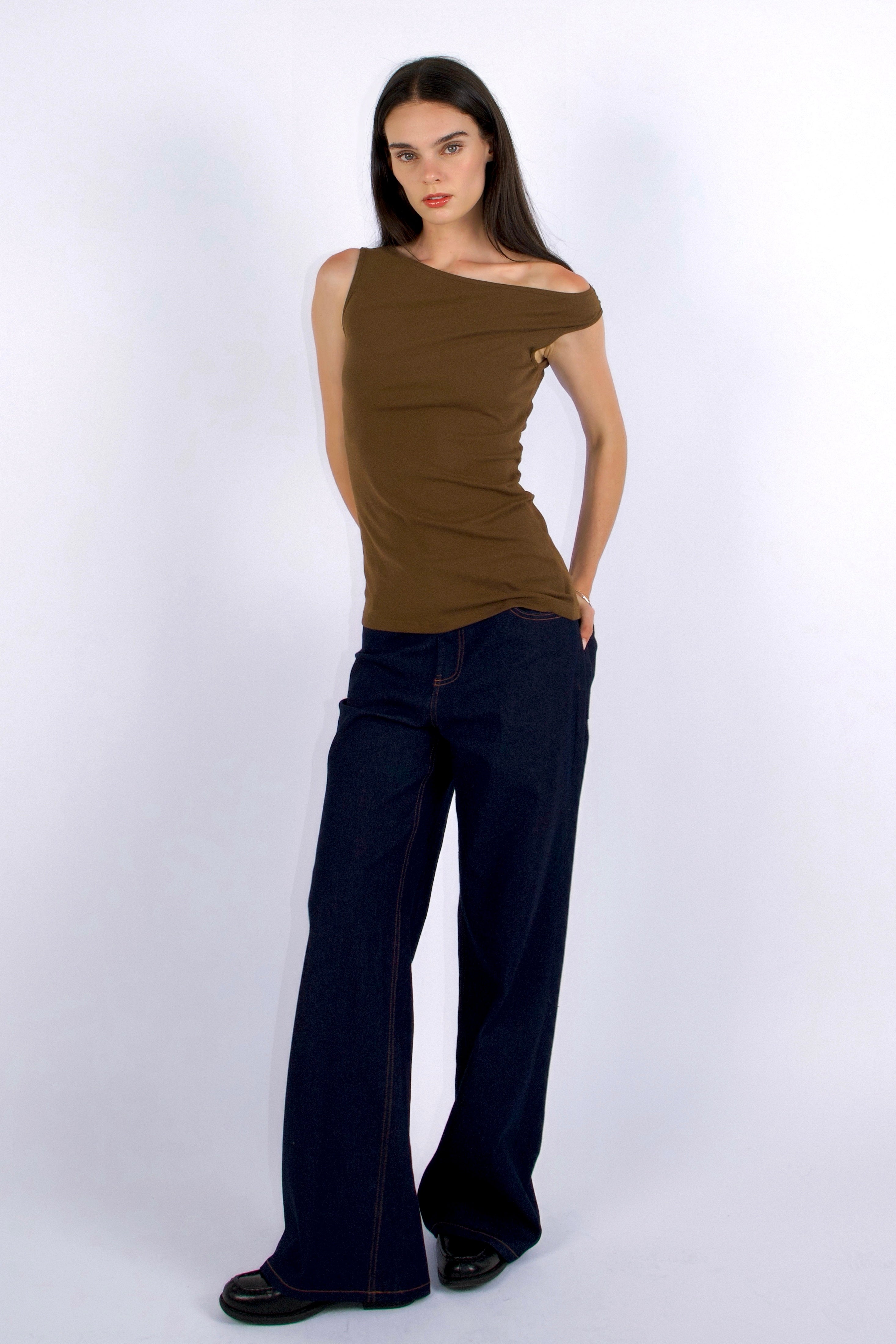 Sable asymmetric top is an expression of quiet confidence and fluid individuality. Designed with an asymmetric neckline and sculptural drape, it offers multiple ways to wear — off one shoulder, twisted, or softly ruched — adapting to your mood and moment.