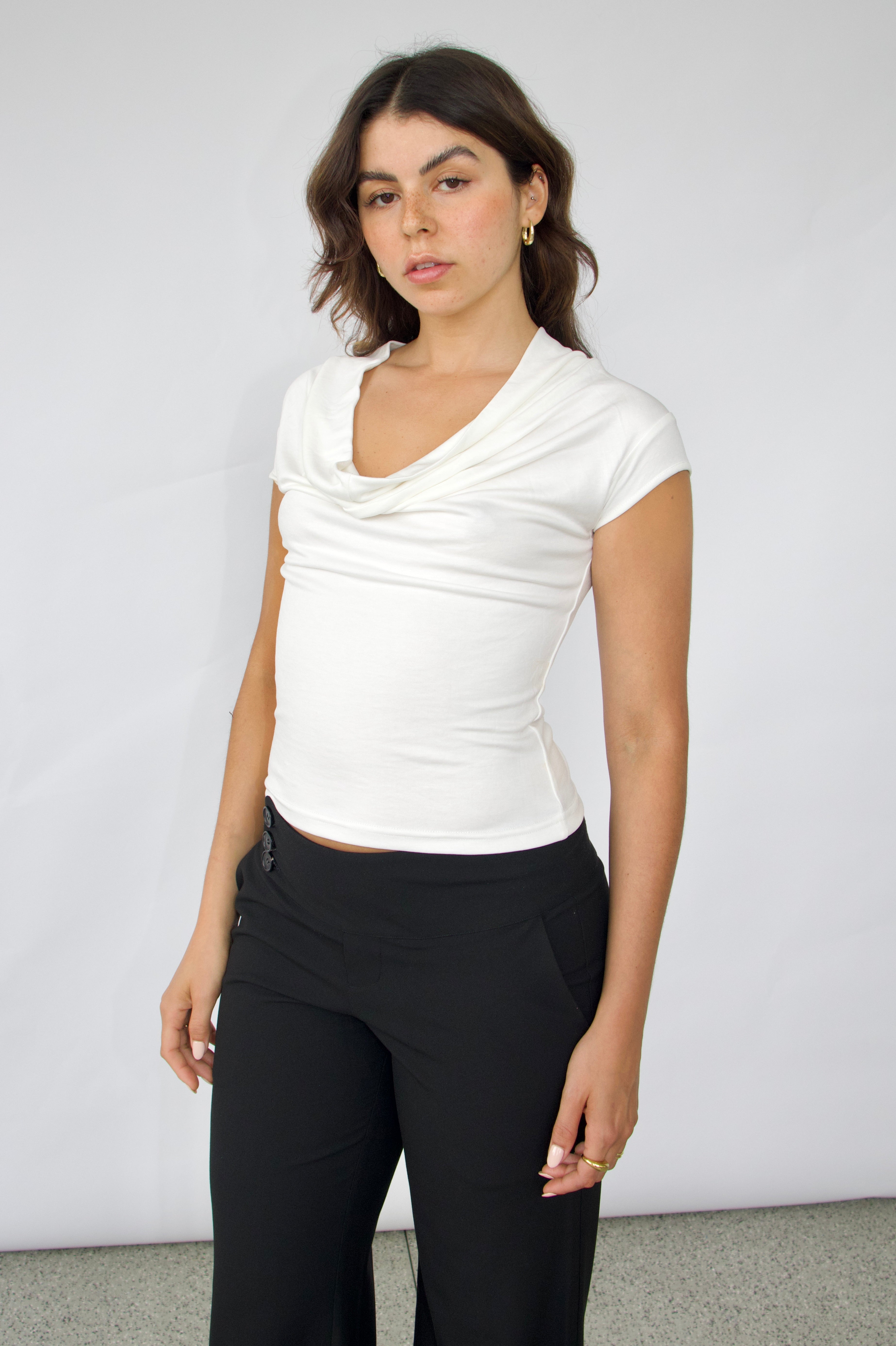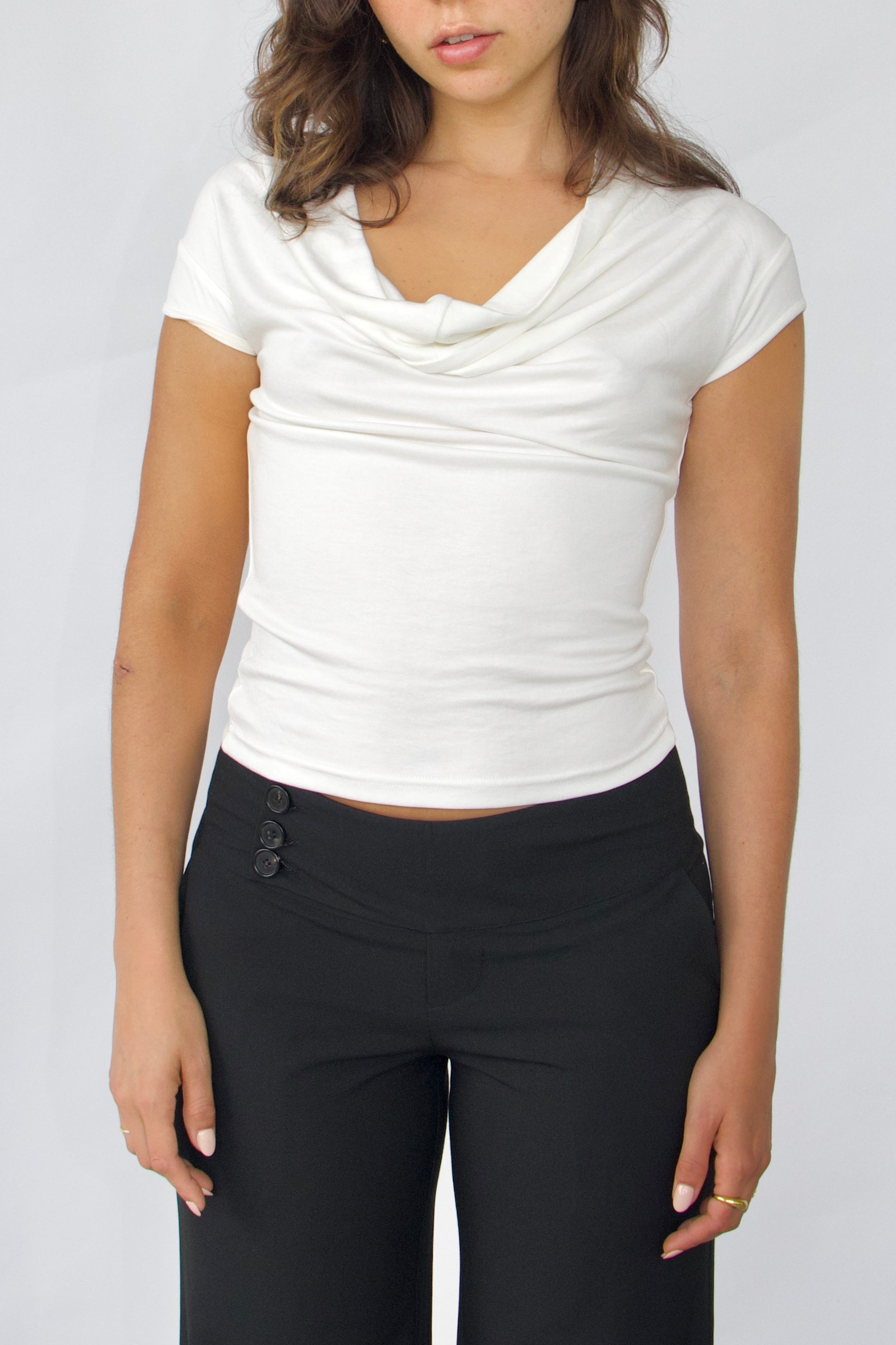 Elevate your everyday style with this handcrafted effortlessly chic cowl neck top. Featuring cap sleeves for a distinctive 90s vibe, this top is crafted from a luxurious cupro blend for a soft, flowy feel.