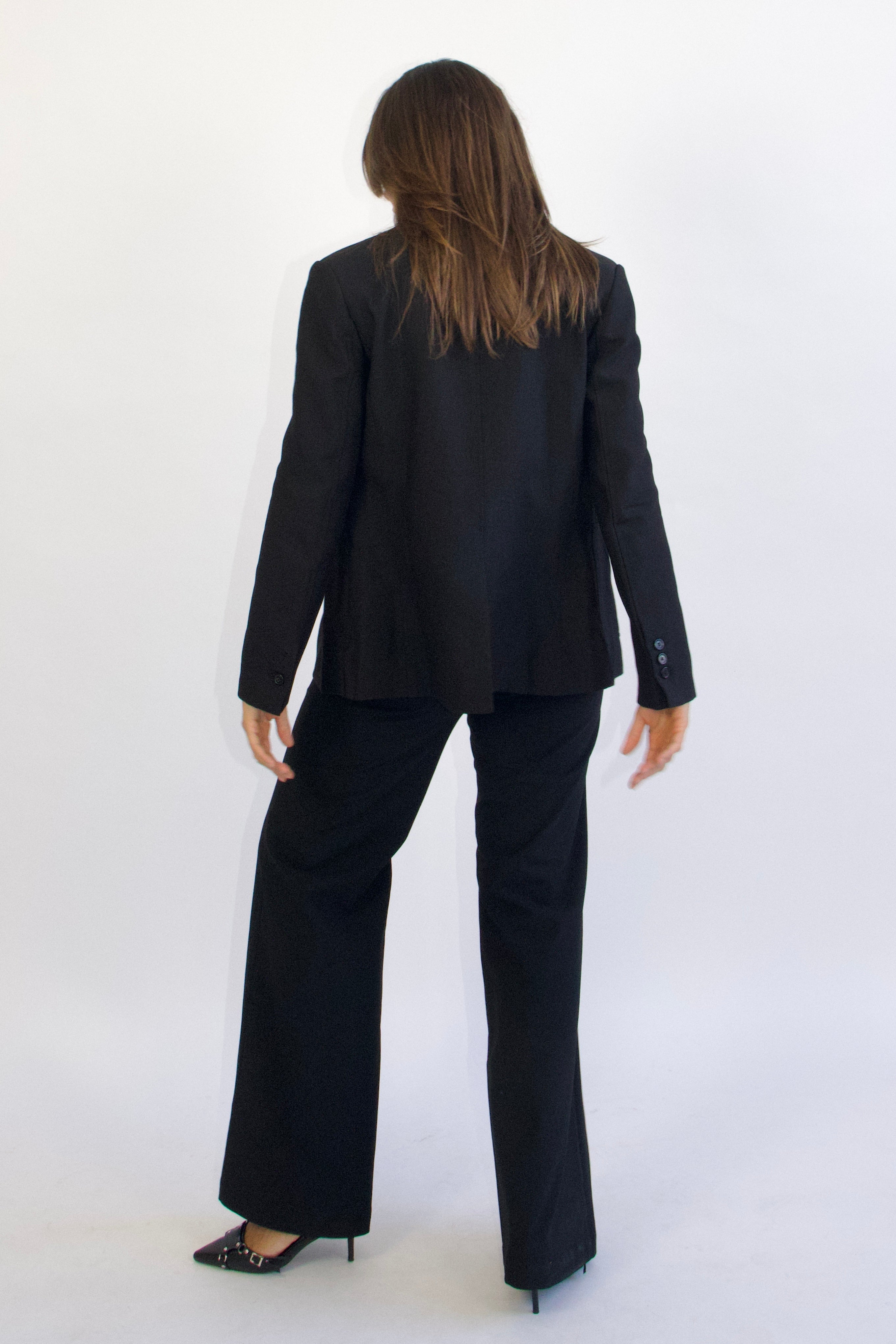 Sharp, structured fit with a subtle nod to vintage menswear-inspired tailoring.