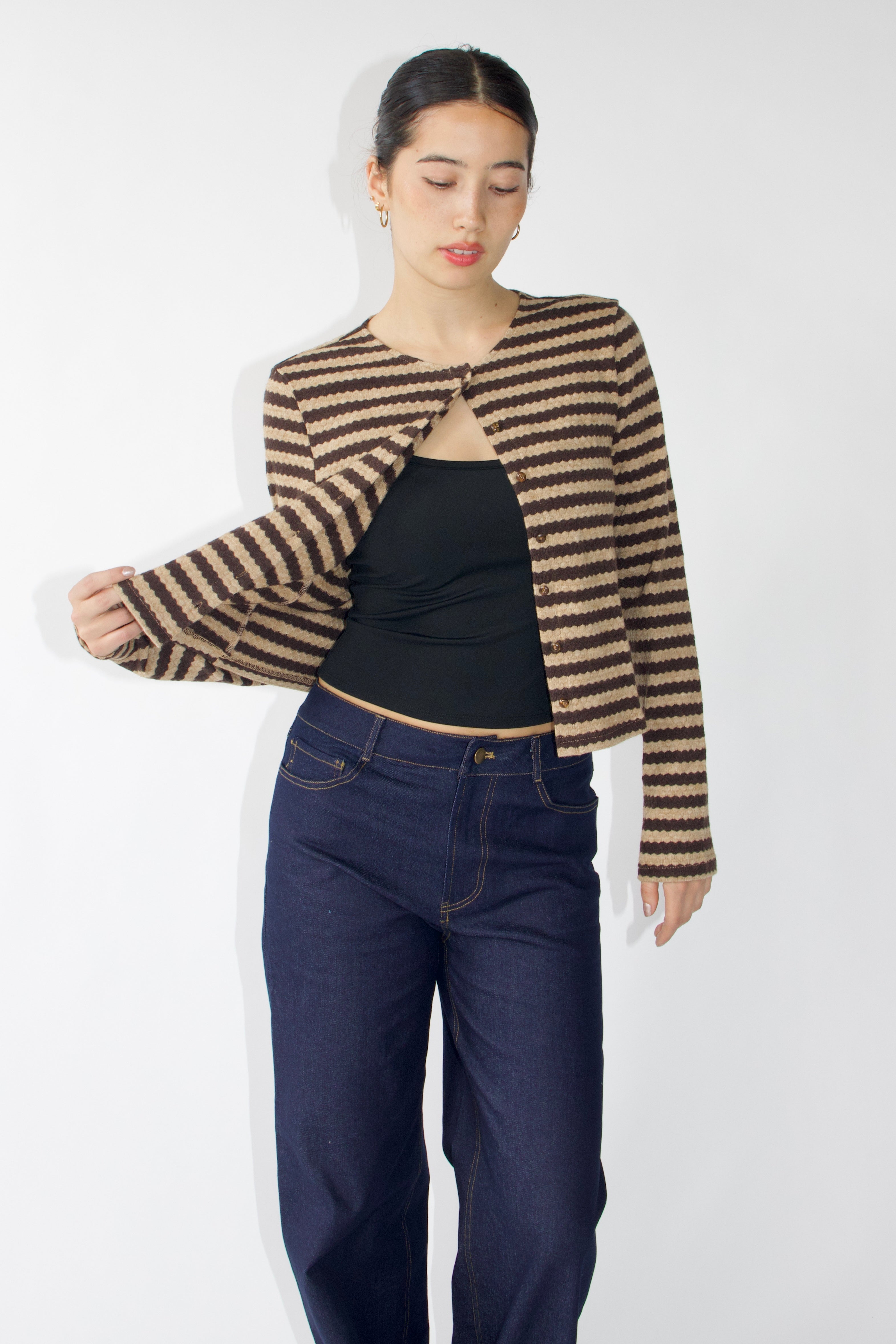 柔软有弹性的纽扣前开衫,灵感源自 90 年代,非常适合春季或秋季分层穿着。